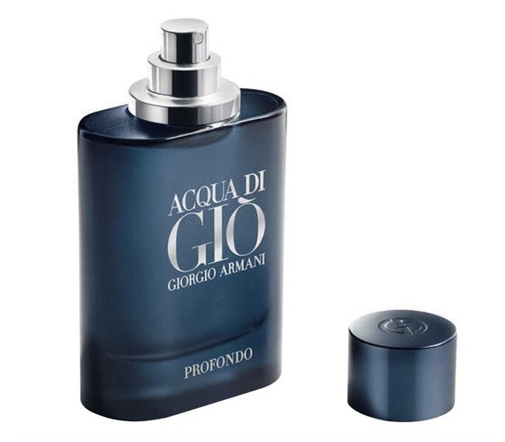 Acqua Di Giò Profondo é a nova e intensa interpretação marinha de Acqua Di Giò, de Giorgio Armani. Como um mergulho no mar azul profundo, os sentidos são despertados pela tangerina verde e bergamota, enquanto um tom ultramarino e quase gelado é transmitido pelas icônicas notas marinhas de Acqua Di Giò.