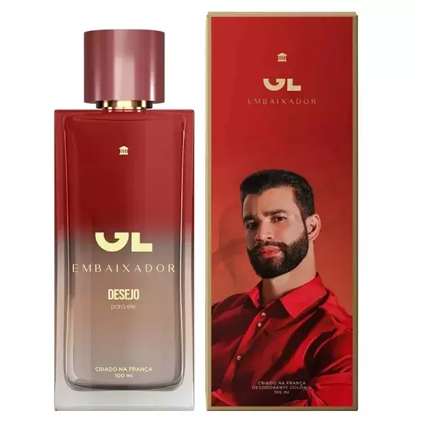 Descubra o GL Embaixador Desejo para Ele, a essência que traduz poder e sofisticação. Desenvolvido por Gusttavo Lima, este perfume traz uma assinatura amadeirada e um coração sedutor, com notas orientais que garantem um toque de elegância.